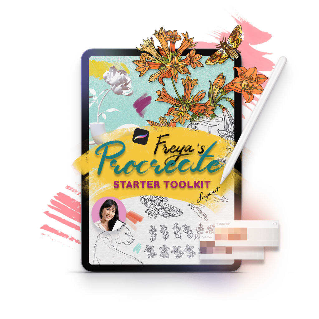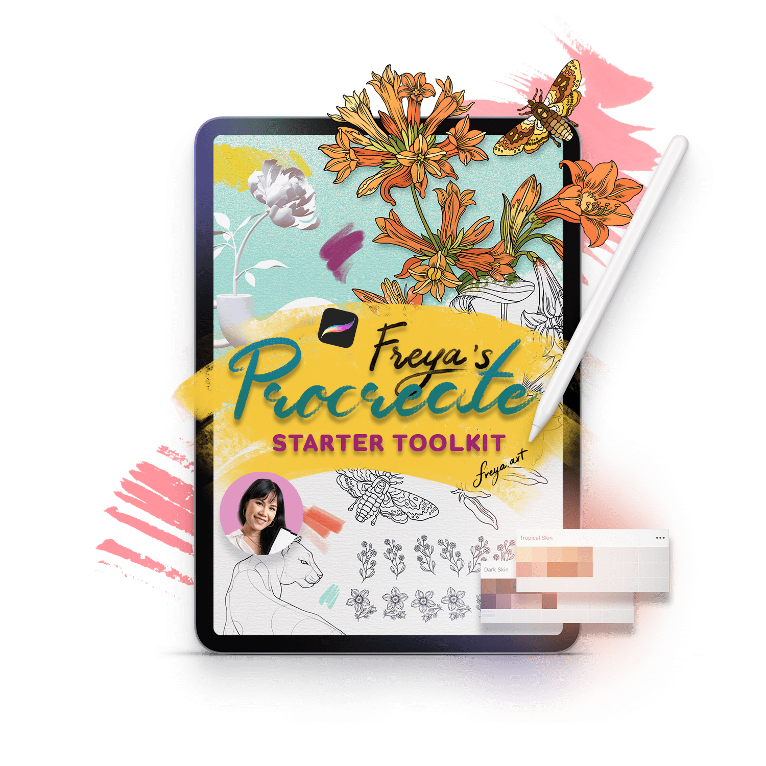 Claim your copy of Freya’s Procreate Starter Toolkit with 80+ Assets for $29 FREE 🫶